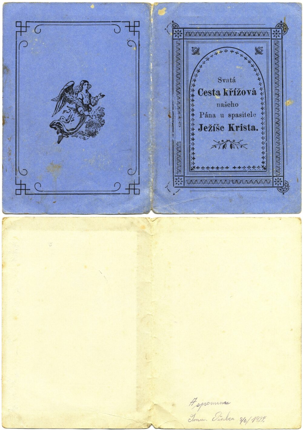 Križev pot Multimédiás elem 16.10.2025 22:06 közzétette Knjižnica Jožeta Udoviča Cerknica Križev pot. Svatá Cesta křížová našeho Pána u spasitele Ježíše Krista, okoli 1924. Mere celote: 14,1 x 9,9 cm, zloženka na štirih straneh. Zbirka Ivane Ošaben iz Martinjaka. Slika FacebookXPinterestLinkedIn Natisni Natisni brez slik