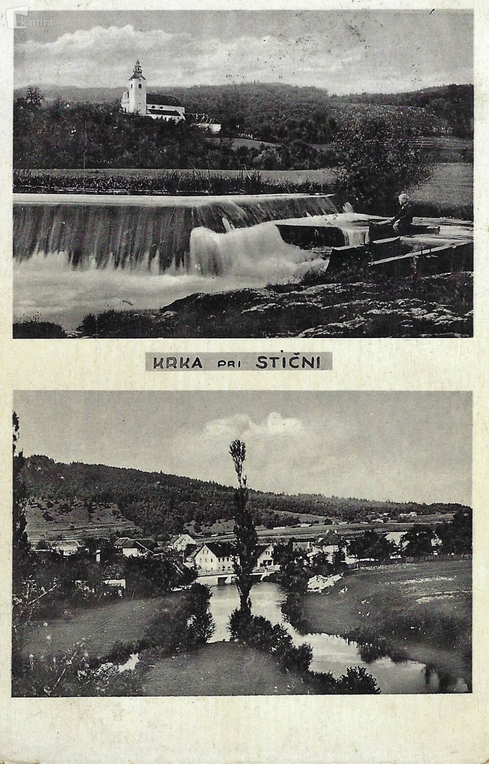 Krka pri Stični Multimédiás elem 03.04.2026 08:38 közzétette Mestna knjižnica Grosuplje Razglednica je pokončna in razdeljena na dva dela. Na zgornji sliki je ribič na brzicah Krke, v ozadju pa cerkev sv. Kozma in Damjana na Krki. Na spodnji je panoramski posnetek reke Krke s hišami ob njej. Slika FacebookXPinterestLinkedIn Natisni Natisni brez slik