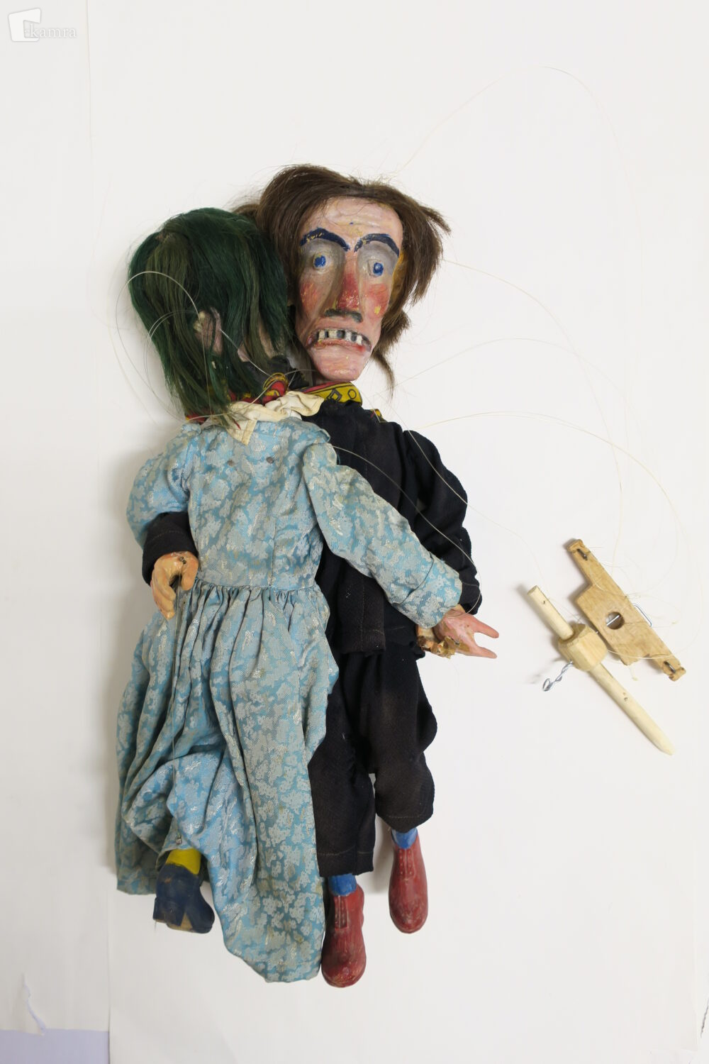 Lesena marioneta, neznan moški lik. Nosi črne hlače in črn zgornji del, pod hlačami so modre nogavice in rdeči gležnarji. Hlače so na določenem mestu strgane. Čevlji imajo na sredi podplata pritrjen žebelj z veliko glavico. okoli vratu ima rumeno-rdeče-črno ruto. Obraz je bledičen, ima izrazito zategnjen izraz na obrazu, kot da je zaskrbljen in prestrašen obenem. Usta ima rahlo ukrivljena navzdol in odprta, kaže vrsto razmaknjenih zob (4). Ima dolg kljukast rdeč nos, rdeča lica, majhne modre oči, ki sedijo globoko v jamicah ter polkrožne črne obrvi. Lasje (človeški) so rjavi in srednje dolgi. Lutka je bila ne dolgo nazaj (2017) pritrjena na drugo lutko za potrebe razstave v Knjižnici Kočevje.