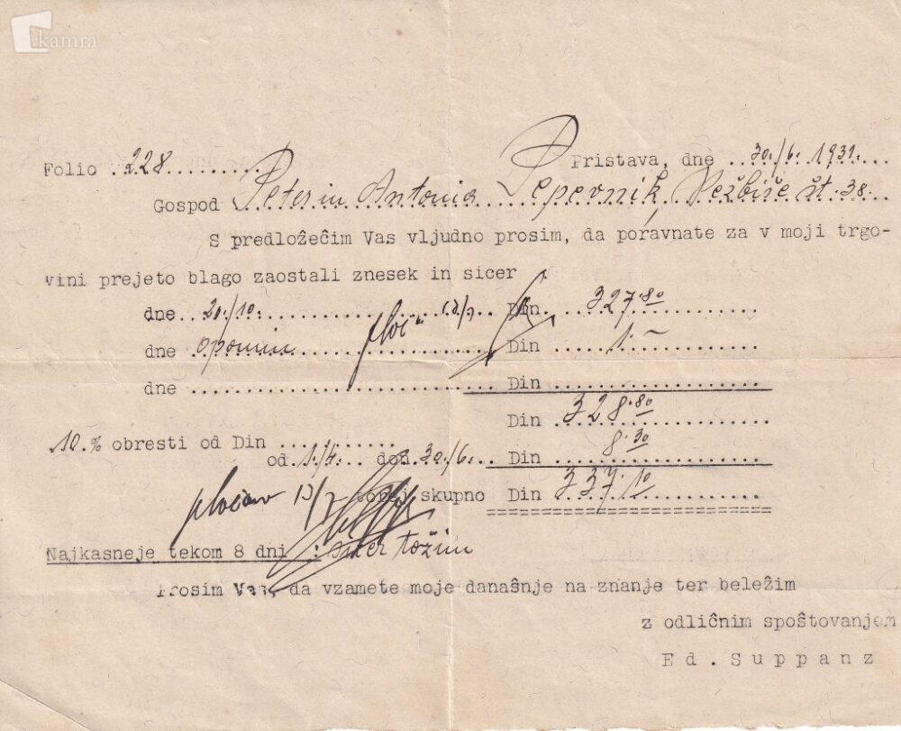 V trgovini so blago jemali na kredo in se počasi utapljali v vse večjih dolgovih. S pretiranim zadolževanjem so mnogi morali svoje imetje prepisati na posojilodajalca Suppanza, in tako je kar nekaj večjih stanovanjskih in poslovnih pristavških hiš postalo njihova last.