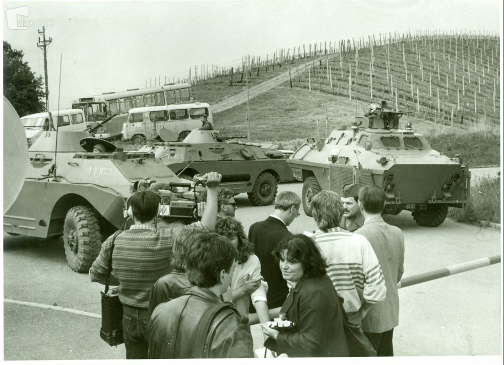 Obkolitev učnega centra v Pekrah, 23. maj 1991 Multimédiás elem 06.07.2021 12:20 közzétette Mariborska knjižnica Obkolitev 710. učnega centra TO v Pekrah, 23. maj 1991. V ospredju novinarka Majda Struc v družbi kolegov novinarjev, v ozadju pri zapornici podpolkovnik JLA Milan Stevilović in načelnik 710. učnega centra TO major Andrej Kocbek. Slika FacebookXPinterestLinkedIn Natisni Natisni brez slik