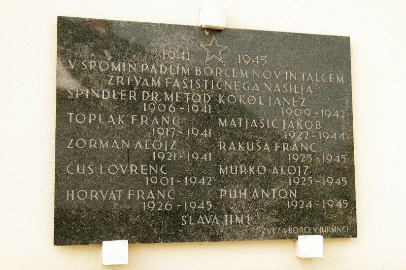 Spominska plošča na zdravstvenem domu v Juršincih je posvečena desetim padlim v NOB. Med njimi je tudi dr. Metod Špindler (1906-1941). V njegovi ordinaciji je bila leta 1941 pomembna javka OF (tajno mesto za vzdrževanje zvez med partizanskimi enotami. Zaradi sodelovanja z OF so Nemci konec avgusta dr. Špindlerja aretirali in ga ustrelili v Mariboru 30. 10. 1941.