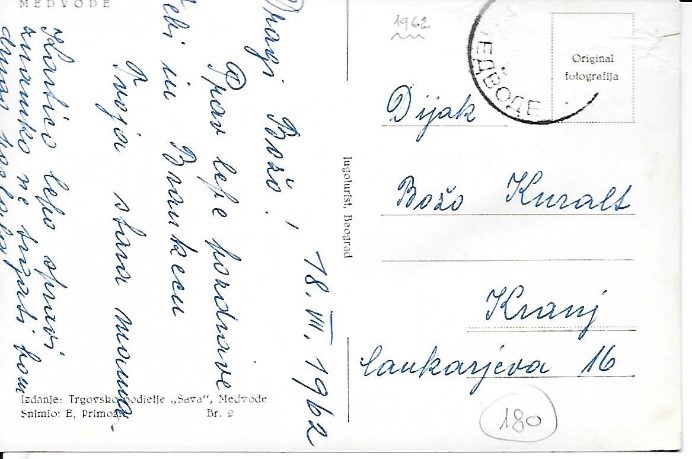 Na razglednici je pogled iz Medvod na Presko s tovarno Color v ospredju. Razglednica, ki jo je izdalo Trgovsko podjetje Sava Medvode,  je bila poslana 18. 7. 1962.