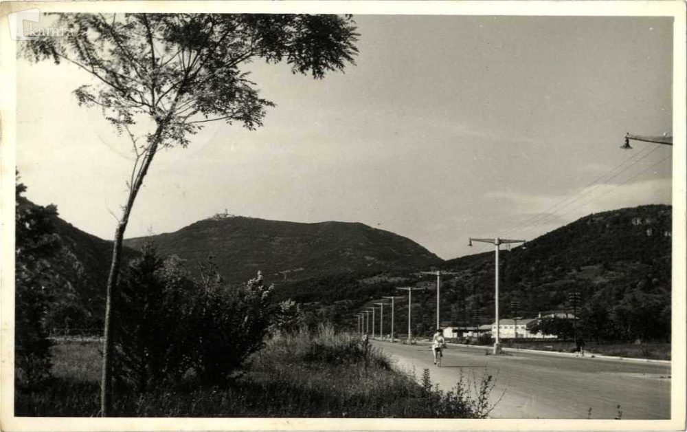 Na razglednici je fotografija severnega dela Kidričeve ulice z osamljeno kolesarko na cesti z uličnimi svetilkami na sredini, v ozadju samo stavba stare komunale. Ob cesti samo trava, grmovje, drevesa. Na hrbtni strani razglednice žig »Turistično olepševalno društvo Gorica, Gostišče Skalnica 682 m«, v poštnem žigu letnica 1958.