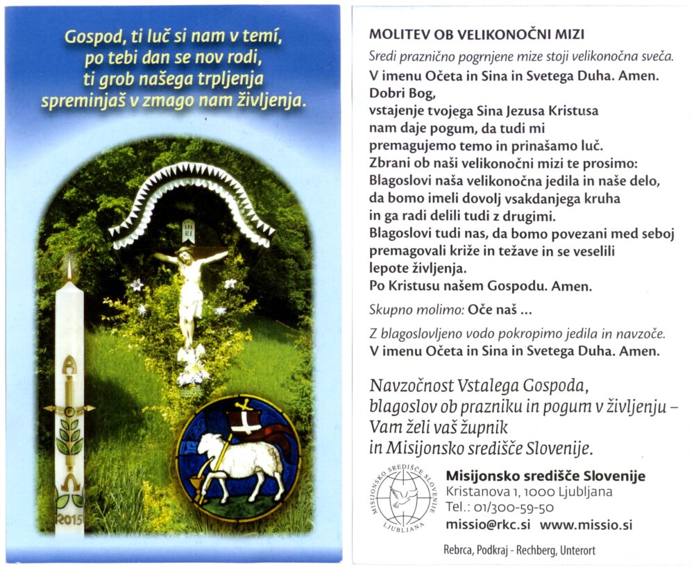 Razpelo Multimédiás elem 16.10.2025 22:05 közzétette Knjižnica Jožeta Udoviča Cerknica Razpelo (Rebrca, Podkraj). Velikonočno Jagnje in sveča. Molitev ob velikonočni mizi in velikonočno voščilo, 2015. Ljubljana: Misijonsko središče Slovenije. Mere: 7,9 x 13 cm. Zbirka družine Kranjec iz Topola pri Begunjah. Slika FacebookXPinterestLinkedIn Natisni Natisni brez slik