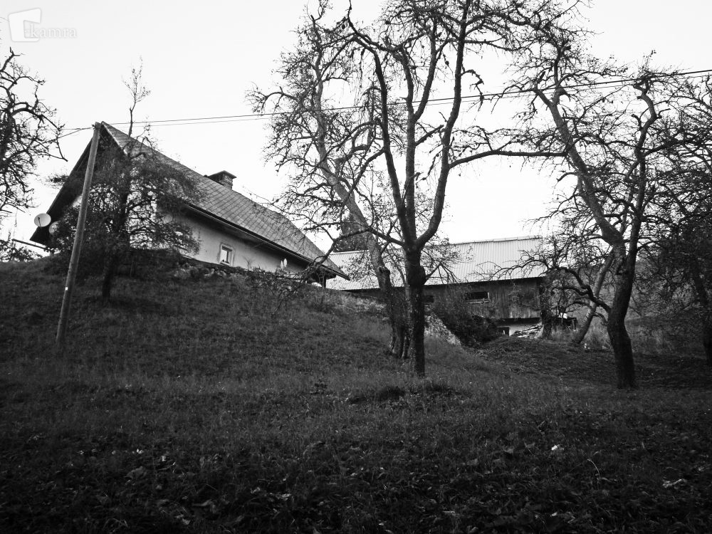 Fotografija, ki je last Francija Smoleja, prikazuje Smolejevo domačijo na Prihodih leta 2015. Objavljena je v knjižici Kako so na železarskih Jesenicah včasih živeli v okviru zgodbe Iz otroštva na gorski kmetiji na “fabrško pot”, ki jo je napisal Franci Smolej.