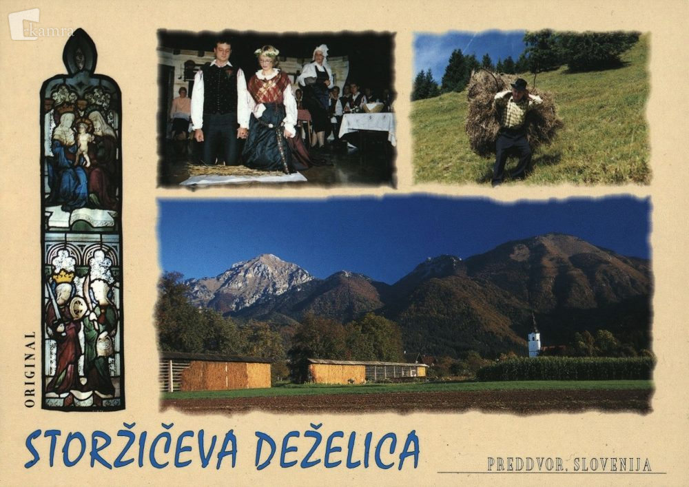 Storžičeva deželica Multimédiás elem 06.01.2017 12:29 közzétette Gorenjski muzej Štiridelna razglednica prikazuje žegen na Beli planini, snarjenje na Zaplati, panoramo Preddvora s Storžičem in Zaplato ter originalen vitraž iz 14. stoletja v cerkvi sv. Lenarta na Bregu. Slika Hrbtna stran FacebookXPinterestLinkedIn Natisni Natisni brez slik
