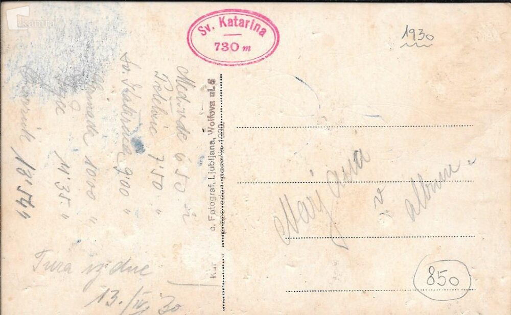 Sv. Katarina, 730 m Multimédiás elem 10.12.2025 09:34 közzétette Knjižnica Medvode Razglednica na zgornji fotografiji prikazuje cerkev sv. Katarine in župnišče v vasi Topol, na spodnji fotografiji pa je gostilna. Med zgornjo in spodnjo fotografijo je napis Sv. Katarina 730 m. Slika Hrbtna stran FacebookXPinterestLinkedIn Natisni Natisni brez slik