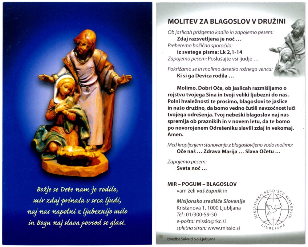 Sveta družina Multimédiás elem 16.10.2025 22:05 közzétette Knjižnica Jožeta Udoviča Cerknica Sveta družina, jaslice. Molitev za blagoslov v družini. Ljubljana: Misijonsko središče Slovenije. Mere: 8 x 13 cm. Zbirka družine Kranjec iz Topola pri Begunjah. Slika FacebookXPinterestLinkedIn Natisni Natisni brez slik
