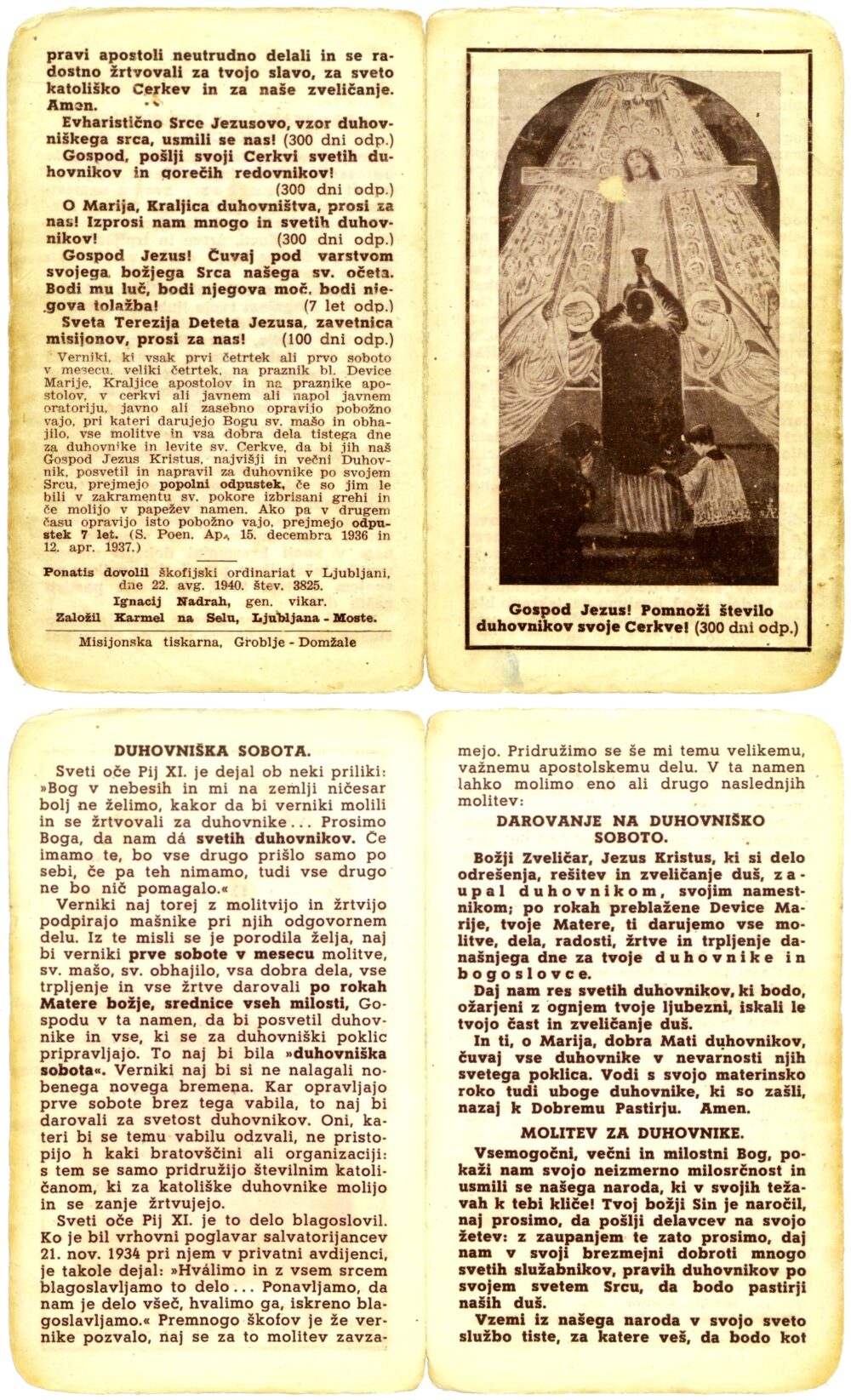 Sveta evharistija Multimédiás elem 16.10.2025 22:05 közzétette Knjižnica Jožeta Udoviča Cerknica Sveta evharistija. Molitev za duhovniške poklice. Ljubljana-Moste: založil Karmel na Selu, Groblje-Domžale: Misijonska tiskarna, po 1940. Mere celote: 15,2 x 12,5 cm, zloženka na štirih straneh. Zbirka družine Kranjec iz Topola pri Begunjah. Slika FacebookXPinterestLinkedIn Natisni Natisni brez slik