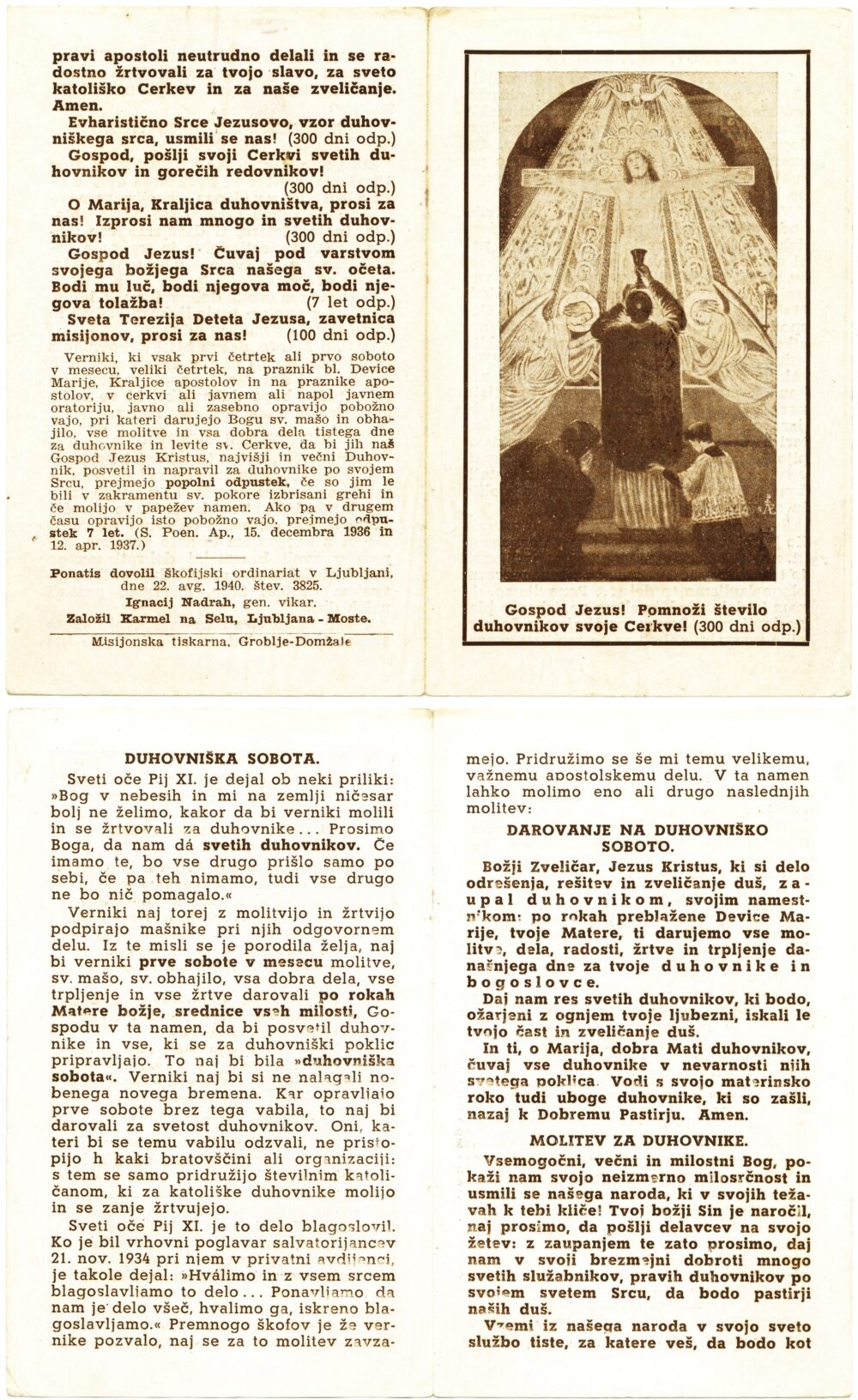 Sveta evharistija Multimédiás elem 16.10.2025 22:05 közzétette Knjižnica Jožeta Udoviča Cerknica Sveta evharistija. Molitev za duhovniške poklice. Ljubljana-Moste: založil Karmel na Selu, Groblje-Domžale: Misijonska tiskarna, po 1940. Mere celote: 15,6 x 12,7 cm, zloženka na štirih straneh. Zbirka Fani Turšič iz Begunj pri Cerknici. Slika FacebookXPinterestLinkedIn Natisni Natisni brez slik