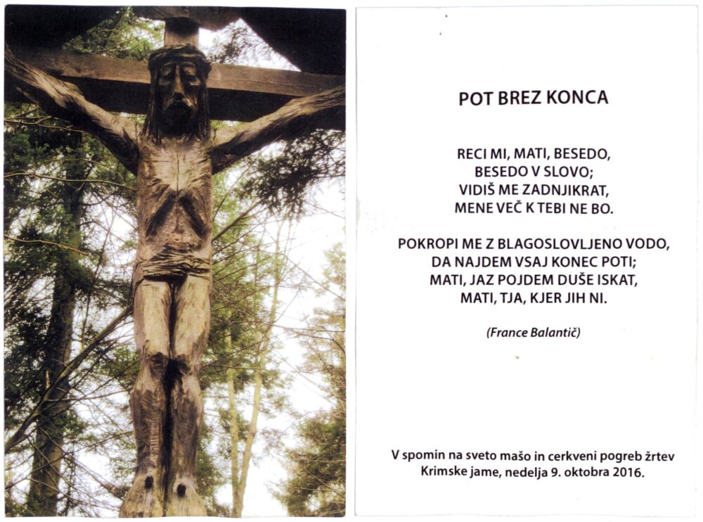 Sveta maša in cerkveni pogreb žrtev Krimske jame, 2016 Multimédiás elem 16.10.2025 22:06 közzétette Knjižnica Jožeta Udoviča Cerknica Sveta maša in cerkveni pogreb žrtev Krimske jame, 9. oktober 2016. Jezus na križu pri Krimski jami (Stane Jarm). Mere: 8 x 12 cm. Zbirka družine Kranjec iz Topola pri Begunjah. Slika FacebookXPinterestLinkedIn Natisni Natisni brez slik