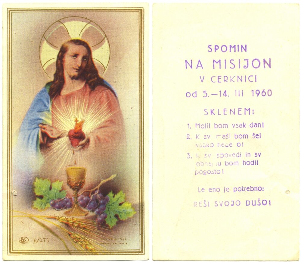 Sveti misijon v Cerknici, 1960 Multimédiás elem 16.10.2025 22:06 közzétette Knjižnica Jožeta Udoviča Cerknica Sveti misijon v Cerknici, 5.–14. marec 1960. Presveto Srce Jezusovo. Milano: Eb Enrico Beretta, 1928–1992. Mere: 5 x 8 cm. Zbirka družine Otoničar iz Martinjaka. Slika FacebookXPinterestLinkedIn Natisni Natisni brez slik