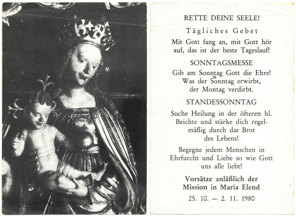 Sveti misijon v cerkvi Žalostne Matere Božje v Rožu, 1980 Multimédiás elem 16.10.2025 22:06 közzétette Knjižnica Jožeta Udoviča Cerknica Sveti misijon v cerkvi Žalostne Matere Božje v Rožu (Maria Elend im Rosental), 25. 10.–2. 11. 1980. Marija z Detetom. Mere: 7,2 x 10,5 cm. Zbirka Fani Turšič iz Begunj pri Cerknici. Slika FacebookXPinterestLinkedIn Natisni Natisni brez slik