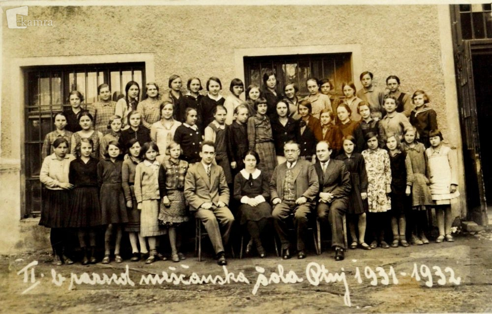 Na sliki so učenci 2.b razreda s svojimi učitelji v šolskem letu 1931/1932.