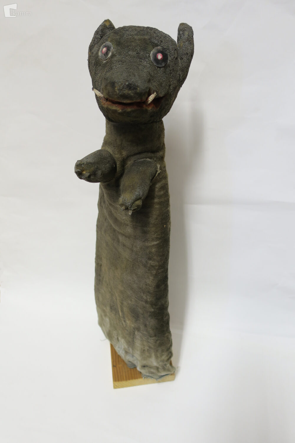 Ročna lutka z glavo iz poliuretanske pene, predstavlja volka. Telo je iz sivega žameta, ki na koncu ni zarobljen. Pod žametnim blagom je tanka podloga poliuretanske pene. Tudi tačke so iz pene. Na koncu tac ima nekaj krempljev, narejenih iz lesa. Oči so črne, z belo piko na sredini in rdečo obrobo. Gobec je podolgovat, na vsaki strani štrli po en čekan. Ustna odprtina je obarvana rdeče. Ušesa so privihana nazaj.