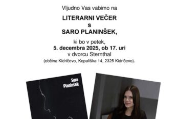 DPD Svoboda Kidričevo vabi na literarni večer s Saro Planinšek, študentko slovenistike in mlado pisateljico, avtorico zbirke kratke proze Glasovi tišine, ki je letos izšla pri Kulturnem centru Maribor. Srečali se bomo v petek, 5. decembra 2025, ob 17. uri v dvorcu Sternthal v Kidričevem.