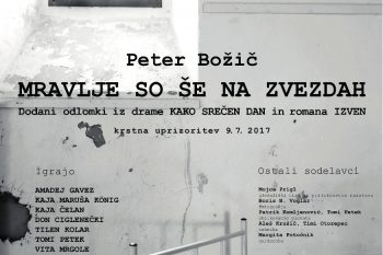 Premiera krstne uprizoritve igre Petra Božiča Mravlje so še na zvezdah je bila izvedena v nedeljo, 9. julija 2017. Besedilo je bilo v literarni in gledališki zgodovini spregledano, danes pa lahko odkrivamo njegovo pomembno umetniško vrednost in aktualnost, čeprav je nastalo že leta 1975.