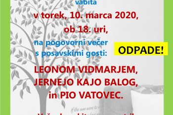 Knjižnica Sevnica in Univerza za tretje življenjsko obdobje (U3) Sevnica vabita v torek, 10. marca 2020, ob 18. uri, na pogovorni večer s posavskimi gosti: Leonom Vidmarjem, Jernejo Kajo Balog, Pio Vatovec in Petrom Dirnbekom.