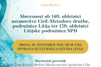 Vabljeni na slovesnost ob 140. obletnici ustanovitve Ciril-Metodove družbe, podružnice Litija ter 120. obletnici Litijske podružnice SPD, ki bo v sredo, 19. novembra 2025, ob 19. uri, v dvorani Kulturnega centra Litija.