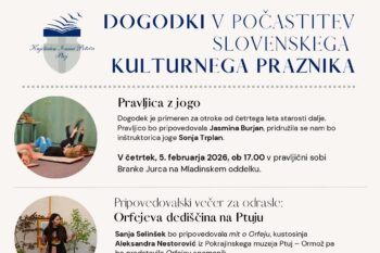 V petek, 6. februarja 2026, ob 10.00 v preddverju knjižnice: voden ogled Pokukaj v vsak kotiček knjižnice. Na tematskem vodenju po ptujski knjižnici si bomo ogledali tudi tiste prostore, ki javnosti običajno niso dostopni. Ogled bo vodila Božena Kmetec – Friedl.