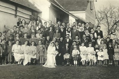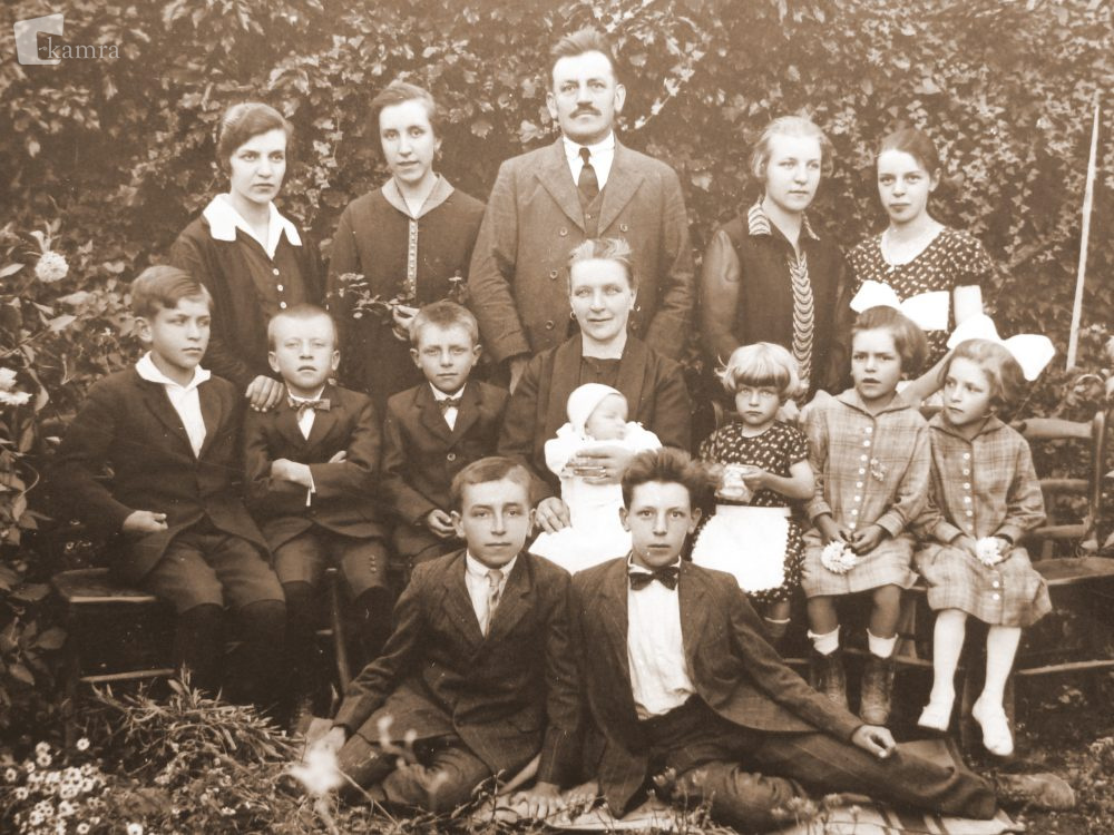 Ni znano, ob kakšni priliki je fotografija nastala, a nastala je na Matetovem vrtu v Knežaku 1926. ali 1927. leta, po napravljenosti oseb sodeč, je bil dogodek prazničen. V sredini in najvišje je moj stari ate po mamini strani, posestnik in trgovec Franc Urbančič, roj. 1874, nižje spodaj sedi njegova žena, moja stara mama Terezija, roj. Štritof 1880 z najmlajšim v naročju, na očetovi desni je moja mama Marija, prvorojenka, okoliinokoli pa gnezdo trinajstih mojih stricev in tet, eden je umrl še kot dojenec.