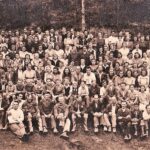 Nas sliki skupina podgorskih planincev z gosti od postavitvi temeljnega kamna za kočo na Kozleku. Sredi slike (s klobukom je) 75 letni planinec Jože Mizgur iz Kosez, ki je temeljni kamen za kočo tudi vzidal in tako naznanil začetek gradnje.
