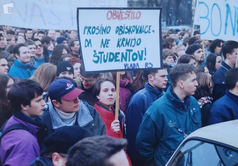 V študentskem domu sem napisala transparent, potem pa smo odšli pred parlament. Spomin se policajev na konjih, da je bilo mrzlo in da smo šli narazen, ko je nekaj protestnikov začelo metati jogurte v parlament.