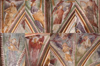 Na podnožju trbinškega hriba se dviga nad vasjo Mirna cerkev sv. Janeza Krstnika, za naselje dovolj mogočna, za umetnostni spomenik pa dovolj vredna, da stoji na tako izpostavljenem mestu. Mirnska cerkev se postavlja v skupino najvrednejših umetnostnih spomenikov na Slovenskem po stavbni zgodovini in opremi ter s freskami. Današnji enoladijski dvoranski prostor s kamnoseško bogato izdelanim rebrastim obokom in bogato profiliranim vhodnim portalom dokazuje nastanek v drugi polovici 15. stoletja. Iz tega časa so tudi freske na oboku prezbiterija, ki jih je poslikal Mojster Bolfgang.
