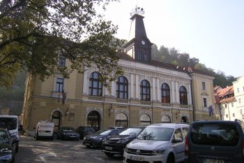 Mestni dom na Krekovem trgu. Cankar je imel v tej stavbi več predavanj s politično vsebino; 12. aprila 1913. leta svoje najbolj znano predavanje z naslovom Slovenci in Jugoslovani.