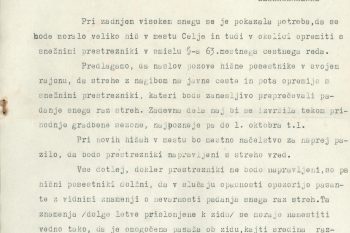 Čiščenje snega z ulic so nekoč določali cestno-policijski redi. Celjski mestni občinski svet je leta 1922 sprejel red, v katerem deveti paragraf natančno določi zimske dolžnosti posestnikov: »Lastniki hiš in zemljišč odnosno njihovi zastopniki morajo hodišča pred istimi dnevno med 6. in 7. uro zjutraj snažiti in v zimskem času s peskom, pepelom itd. posipati«. Predstojništvo mestne policije v Celju pa je decembra 1933 razglasilo podobno naredbo bana dravske banovine, ki je v paragrafu 75 določila: