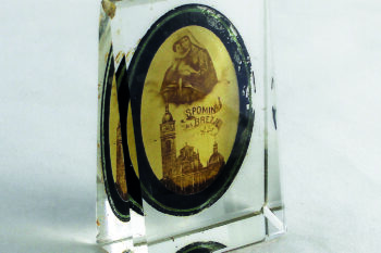 Obtežilniki s fotografijo (photo sulphides) so bili posebnost čeških steklarjev med leti 1900 in 1914. Na keramične ploščice v obliki okvirja, izdelane iz temperaturno visoko odpornega porcelana ali kakšnega drugega podobnega materiala, so s posebnim zapletenim postopkom aplicirali fotografije pomembnih osebnosti, zakonskih parov, otrok, redkeje podobe tovarn za potrebe oglaševanja itd.