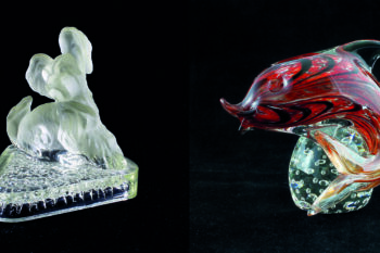 Skulpture (sulphides) so tridimenzionalni prikazi ljudi (najpogosteje glav ali poprsja), živali, zgradb in podobnih motivov. Običajno so izdelani iz temperaturno visoko odpornega porcelana ali kakšnega drugega podobnega materiala, ki mora imeti enak temperaturni koeficient prostorninskega raztezka kot steklo, zato da ob kasnejšem ohlajanju med njima ne pride do neželenih napetosti. Na keramičnih figurah se ob obdajanju, na stiku z raztaljenim steklom, pogosto razvije zelo tanek film drobnih mehurčkov, zato zaradi lomljenja svetlobe dobijo srebrn sijaj.
