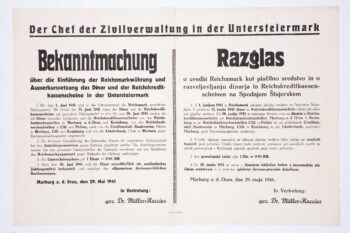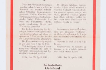 11. aprila 1941 je v Celje vkorakala nemška okupacijska vojska. Že takoj ob prihodu so Nemci začeli izvajati politiko raznarodovanja slovenskega naroda. Prepovedali so uporabo slovenskega jezika v javnosti, ponemčevali osebna in krajevna imena, ukinili slovenska društva in organizacije ter zaplenili njihovo premoženje. Prepovedali so slovenski tisk, uničevali slovenske knjige, uvedli nemški izobraževalni sistem in uvedli svoje plačilno sredstvo. Zasegli so industrijske obrate, banke, zavarovalne družbe, časopise in druga podjetja, ki so bila v slovenskem lastništvu, ter prevzeli celotno gospodarstvo v svoje roke.