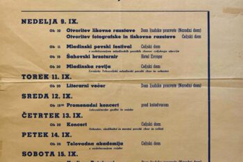 Sklop prireditvenih plakatov sestavljajo razstavni, filmski, gledališki, glasbeni, športni, turistični in izobraževalni plakati, ki so vabili na različne kulturne prireditve v mestu in izven njega.
