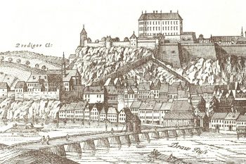 Leta 1473 se je med glavnim tokom reke ob Bregu in mestom izoblikovala sipina – ta je obstajala do konca 17. stoletja, ko jo je reka začela počasi odplavljati. Zaradi sipine je imel takratni most dva dela: prvi je vodil preko glavnega rečnega stržena do sipine, drugi pa od sipine preko rečnega rokava do mestnih vrat. V sredini je bil most opremljen z uto in dvižnim delom, prav tako na koncu pred mestnimi vrati. V primeru nevarnosti so most lahko dvakrat prekinili in tako zavarovali vhod v mesto iz rečne strani. Na koncu mostu je stala mitnica.