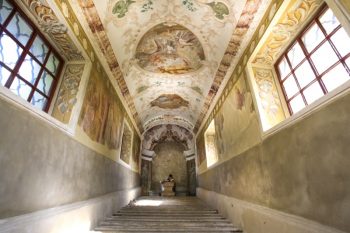 Zadnjo kapelo sestavljajo svete stopnice in Božji grob. Svete stopnice posnemajo 28 stopnic, po katerih naj bi šel Jezus v Jeruzalemu k Pilatu in naj bi jih dala sv. Helena prenesti v Rim.
