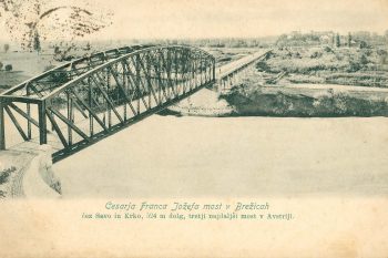 Poimenovali so ga po cesarju Francu Jožefu I. Leta 1906 je bilo poleg brežiškega zgrajenih še več drugih mostov s posvetilom cesarju Francu Jožefu. V stebra na začetku mostu so vgradili plošči z datumom gradnje in imenom mostu – Kaiser Franz Josef Brück.