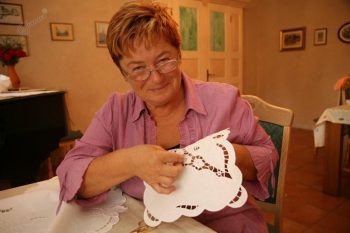 Vera Semenič iz Bukovice pri Vodicah se je rišeljeja, ki mu pri nas pravijo tudi beli vez, pa tudi drugih ročnih del lotila pred dvema letoma. Čeprav bi po spretnosti njenih prstov zlahka sklepali, da jo ročna dela spremljajo že od nekdaj. Res je vse življenje delala z rokami, saj se je že kot petnajstletni deklič začela učiti za pletiljo v Rašici, a strojno pletenje je vendar nekaj povsem drugega v primerjavi z ročnim.
