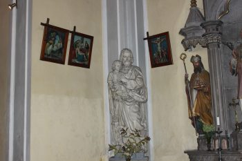 Stopimo malo nazaj in zavijmo na klanec. Pri 300 let stari hiši, Cerkvena ulica 1, nam oko obstane na skromni, rjavo obarvani pločevinasti hišici – znamenjem, ki je pokrito z valovito strešico. V njem je podoba sv. Jožefa z Detetom, kamor so jo dali lastniki hiše v upanju, da bo priprošnjik obrnil vse v dobro.