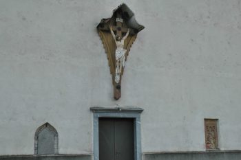 Pod vrhom klanca, v Cerkveni ulici med številkama 5 in 7, zaide pogled nehote prek kovane ograje na križ s Križanim.