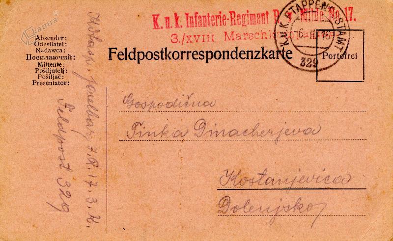 Jože Cvelbar - dopisnica poslana 4.2.1916 Elemento multimediale 29.12.2011 09:50 pubblicato da Knjižnica Mirana Jarca Novo mesto Dopisnica, poslana Tinki Dinacher v Kostanjevico 4. 2. 1916. Slika Hrbtna stran FacebookXPinterestLinkedIn Natisni Natisni brez slik