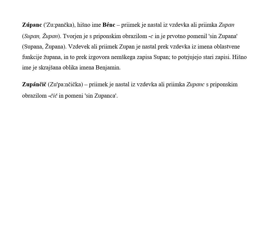 Priimki imajo v oklepajih dodano jezikoslovno fonetično zapisano žensko obliko priimka, ponekod pa so zraven tudi hišna imena.