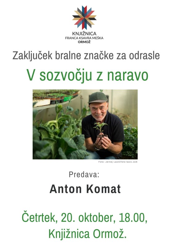 Zaključek bralne značke za odrasle - Anton Komat: V sozvočju z naravo Elemento multimediale 12.10.2022 10:12 pubblicato da Knjižnica Franca Ksavra Meška Ormož Slika FacebookXPinterestLinkedIn Natisni Natisni brez slik