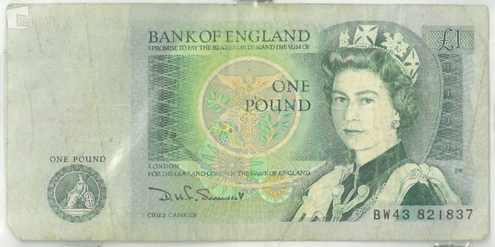 Velika Britanija, 1797-1984. Na bankovcu sta upodobljena Elizabeta II., kraljica Združenega kraljestva Velike Britanije in Severne Irske in drugih delov Commonwealtha ter Sir Isaac Newton, PRS, angleški fizik, matematik, astronom, filozof, ezoterik in alkimist.