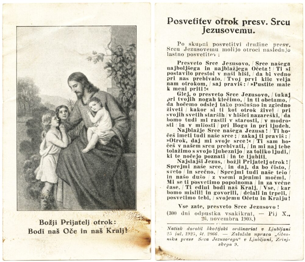 Božji Prijatelj otrok Elemento multimediale 16.10.2025 22:06 pubblicato da Knjižnica Jožeta Udoviča Cerknica Božji Prijatelj otrok. Posvetitev otrok presvetemu Srcu Jezusovemu, po 1925. Založila uprava Glasnika presvetega Srca Jezusovega v Ljubljani. Mere: 6,5 x 11,1 cm. Zbirka Fani Turšič iz Begunj pri Cerknici. Slika FacebookXPinterestLinkedIn Natisni Natisni brez slik