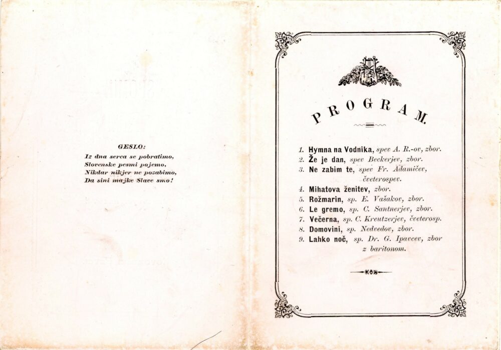 Program je natisnil novomeški tiskar V. Boben (Vincenc, Vinko).