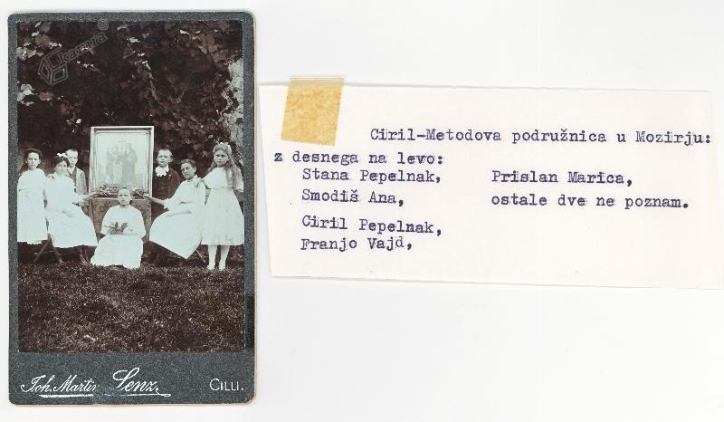 Člani Ciril- Metodove podružnice iz Mozirja Elemento multimediale 28.05.2010 08:57 pubblicato da Osrednja knjižnica Celje Johann Martin Lenz, Člani Ciril- Metodove podružnice iz Mozirja: z leve: neznanka, Prislan Marica, Franjo Vajd, neznanka, Ciril Pepelnak, Smodiš Ana, stana Pepelnak, pred 1914, vizitni format. Slika FacebookXPinterestLinkedIn Natisni Natisni brez slik