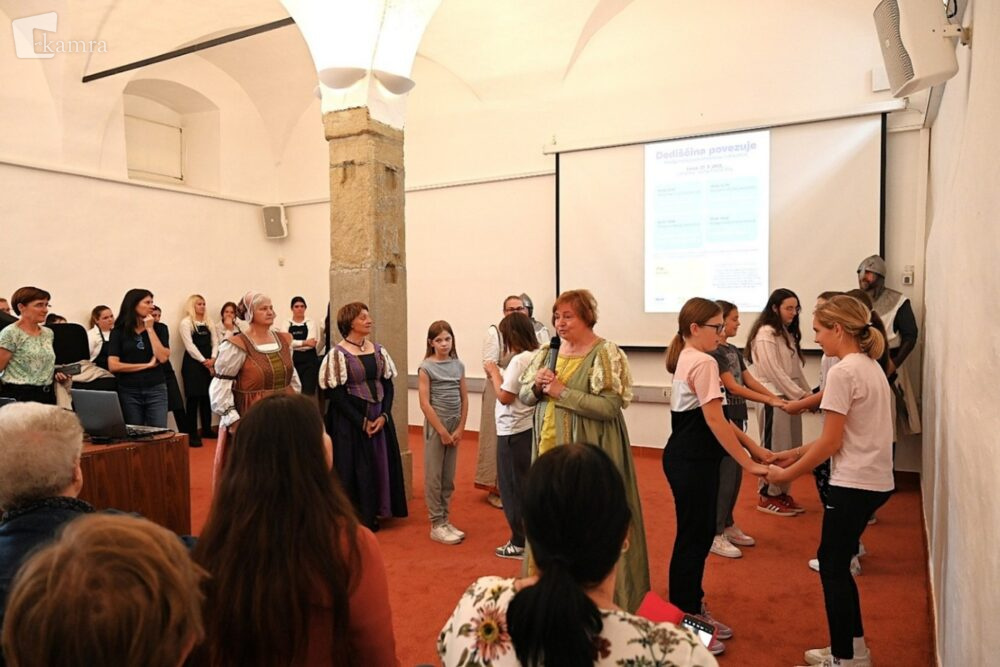 V okviru projekta Dediščina povezuje je bilo izvedenih več delavnic, ki so bile namenjene neformalnemu prenosu znanja in druženju med generacijami. Na njih so sodelovali učenci ptujskih osnovnih in srednjih šol ter člani različnih društev. Na fotografiji so članice Društva Cesarsko-kraljevi Ptuj, ki so izvedle delavnico srednjeveškega plesa.