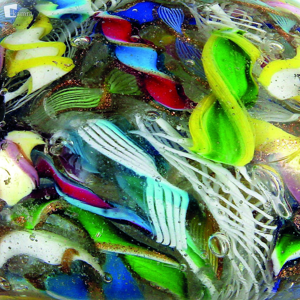 Detajl umešanega muranskega obtežilnika Elemento multimediale 15.12.2025 11:41 pubblicato da Osrednja knjižnica Celje Detajl umešanega muranskega obtežilnika iz klasičnega obdobja (1845 – 1870), ki vključuje raznobarvne filigranske zvitke, koščke steklenih trakov in avanturinskega stekla, ki so bili pogosto odpadki pri izdelavi drugih steklenih predmetov. Slika FacebookXPinterestLinkedIn Natisni Natisni brez slik